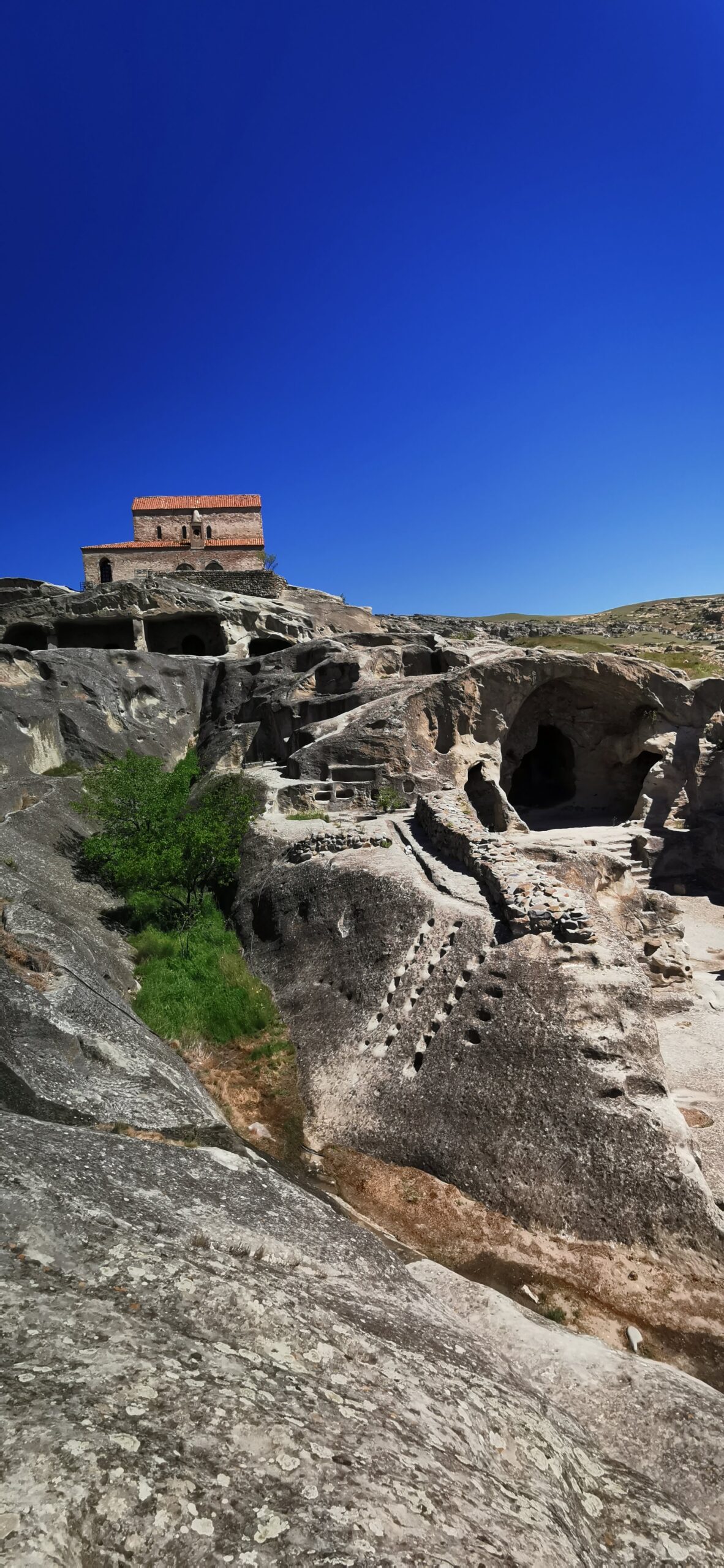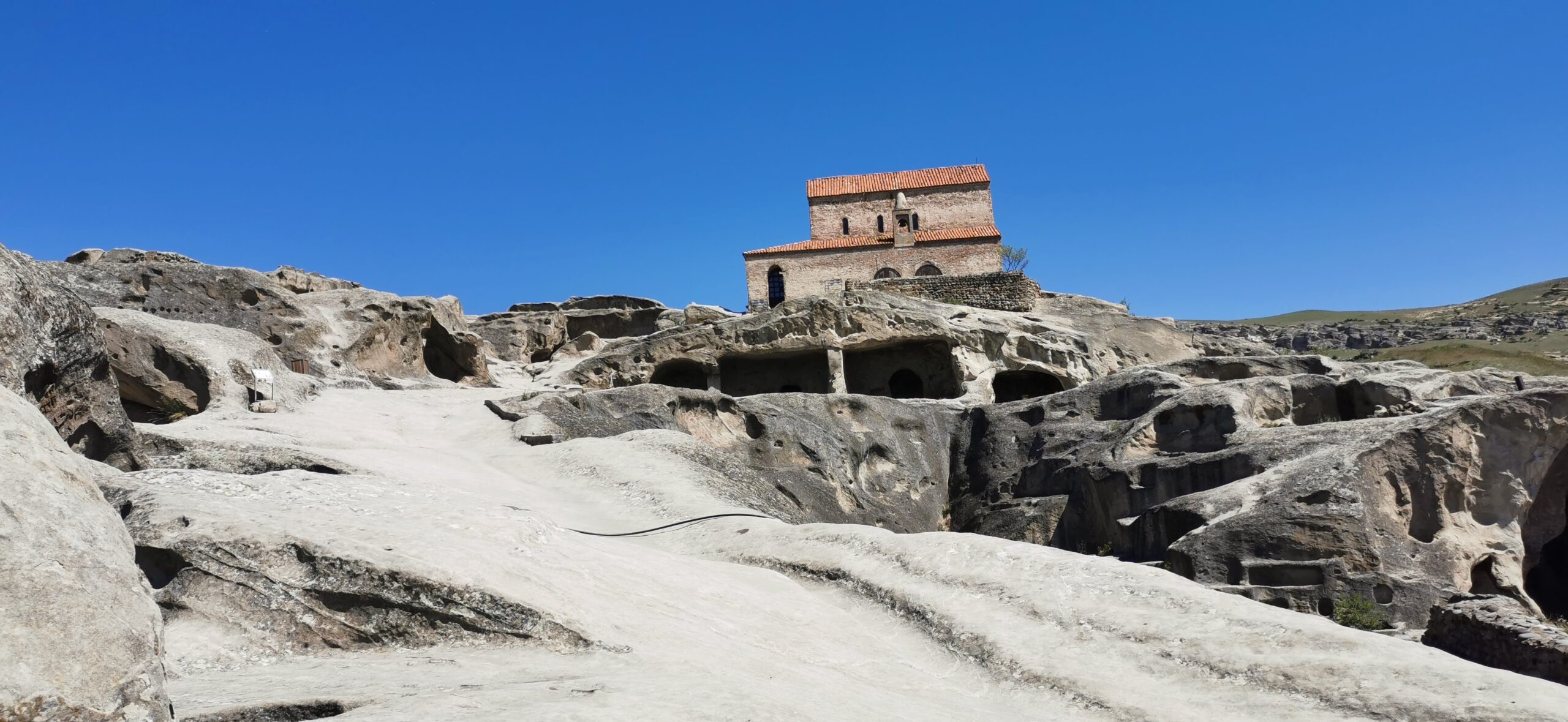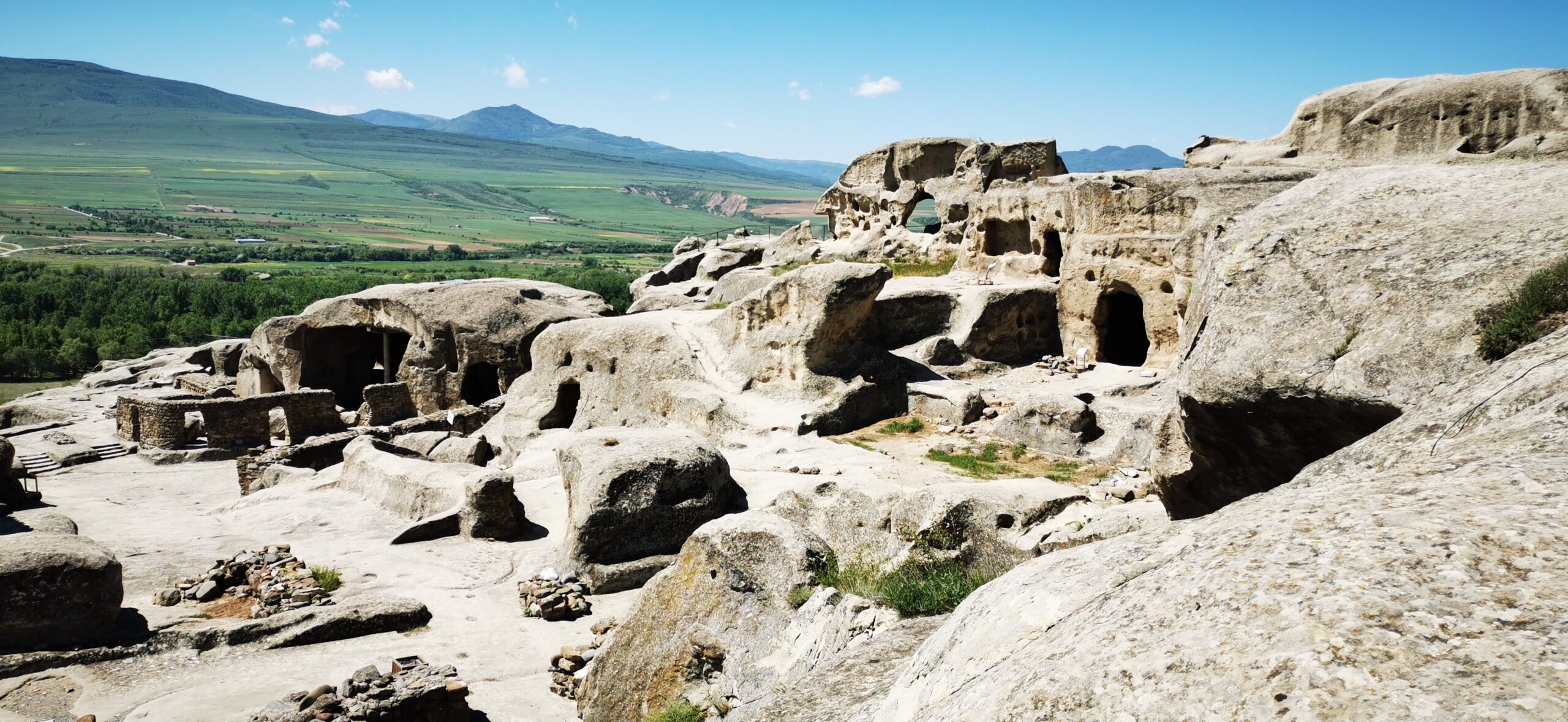 The Stalin museum is not the only thing interesting in Gori. 10 minutes by car, there is Uplistsikhe, which is an ancient rock-hewn town with buildings carved into stony mountains. It is one of the oldest settlements in Georgia. We paid the entrance fee and purchased a cassette with headphones that guided us through the site and uncovered most of the mysteries linked to each stone house or palace. It was stunning and we got to know a lot from the audio guide. We spent around 3 hours here and we could have had to spend even more if there was no driver waiting for us in the parking in front of the entrance. We took a driver from the train station in Gori who happily drove us to this site and waited for us to finish our sightseeing, for a fee of course.