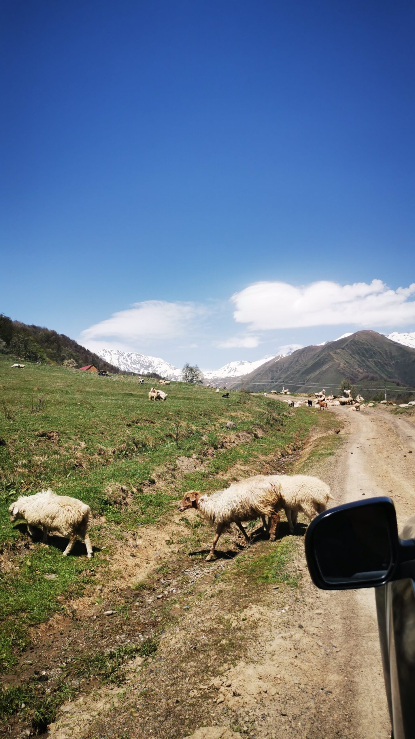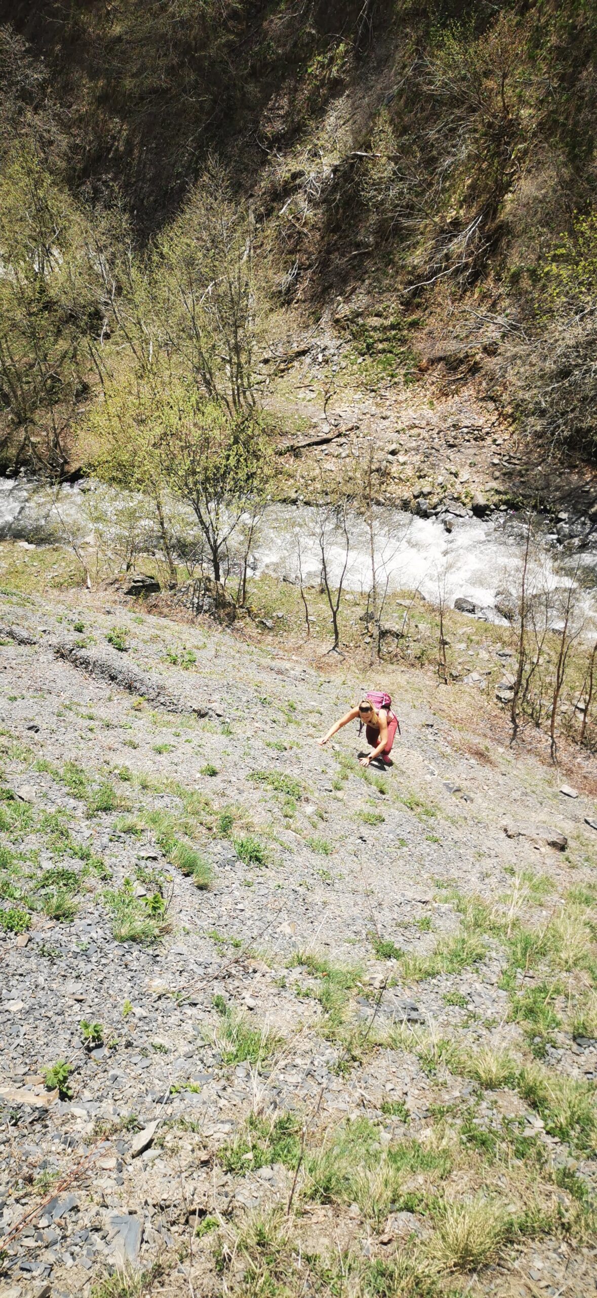 We had enough of city tours, hence we opted for a “small” hike to Abudelauri lakes. We chose this hike because its starting point was seemingly accessible by car and it was supposed to take us only a few hours. I said seemingly because our driver, we booked him with a car in advance (via gotrip.ge)to take us there since we did not know the location nor the road conditions, could not drive us there because of the road conditions. ?♀️ Huge 90-degree hill divided us from the village (Roshka), where we were supposed to start the hike. The driver, after some difficulties, found a different road going almost to the same spot. So instead of Roshka, we ended up almost in a river passing our road somewhere in a forest. The river was so deep that the car could not go further and we had to get out and start the hike from there.